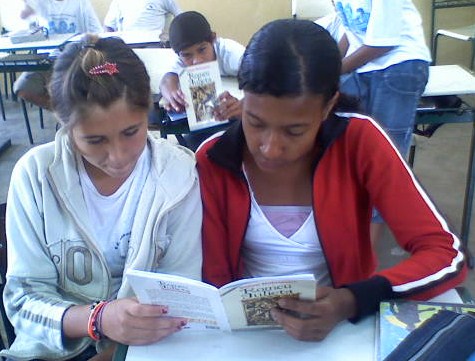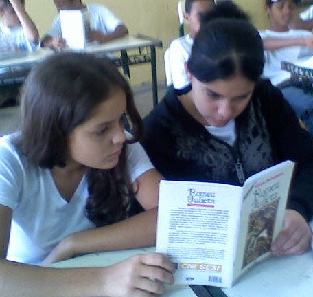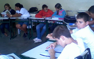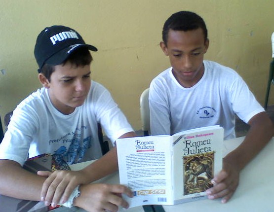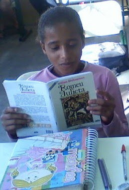 Nesse momento, iniciamos a leitura de um dos clássicos do autor: "Romeu e Julieta". Como não há livros suficientes para todos os alunos, o jeito foi dividi-los em duplas (ou trios), o que, graças a Deus, não comprometeu o bom andamento do trabalho.